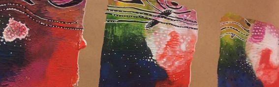 I often lose myself in playing with paint. Not even painting a specific thing, just watching paint interact with surfaces, brush strokes, mediums and textures. It becomes a moving meditation and an escape from the niggling worries in my mind. Like my colourful piece below.